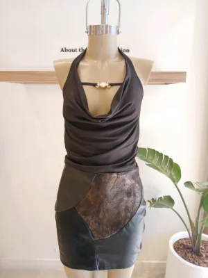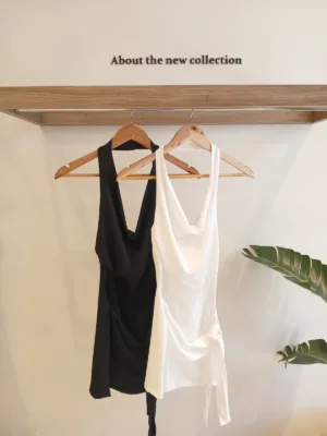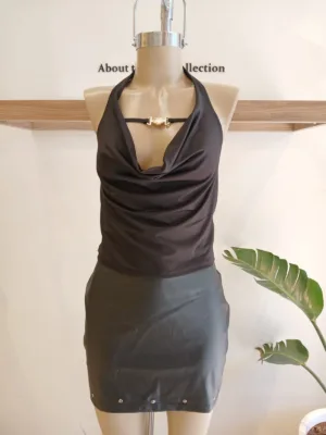 TOP HALTER DE TAZA FRUNCIDA CON ESPALDA DESCUBIERTA Y DOBLE ARGOLLA