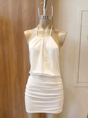 VESTIDO CORTO “ALMA” CON TIRA PARA ATAR Y FRUNCES ALTERALES