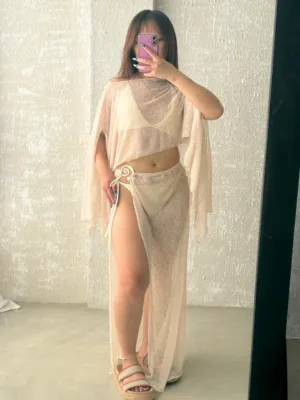$14,800.00VESTIDO LARGO IRREGULAR CON VOLADOS Y TIRA PARA ATAR EN ESPALDA