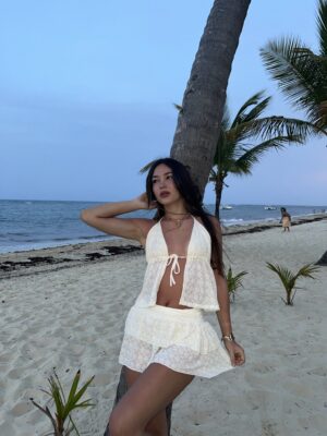 $8,900.00MINI ACAMPANADA “PEACY SOUL” CON CINTO Y APLIQUE