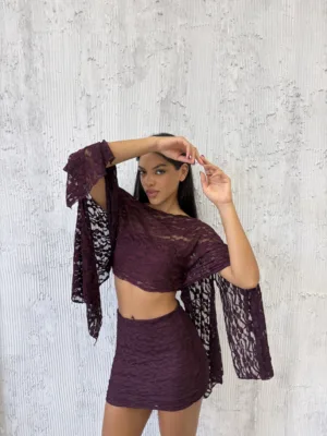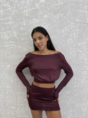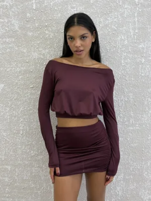 TOP UNA MANGA LARGA CON UN HOMBRO DESCUBIERTO Y MINI APLIQUES