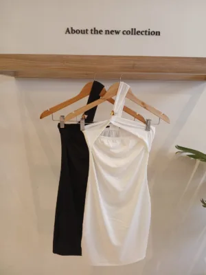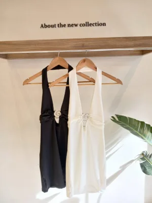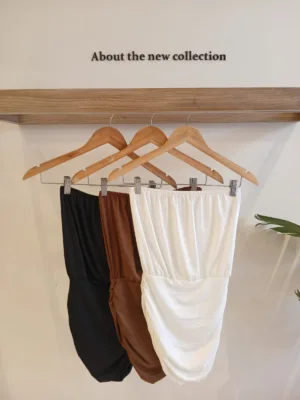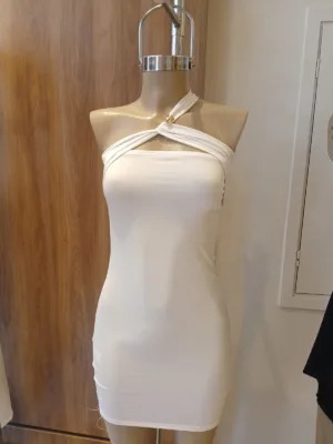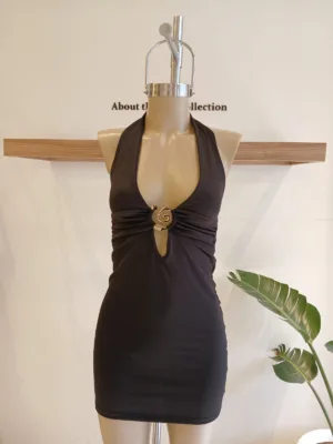 $7,600.00VESTIDO CON ESCOTE PROFUNDO, TIRAS PARA ATAR Y FRUNCES LATERALES