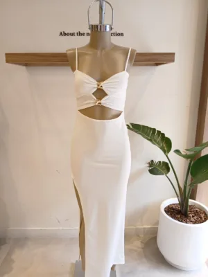$12,900.00VESTIDO MUSCULOSA CON ABERTURAS LATERALES Y APLIQUE ETEREO