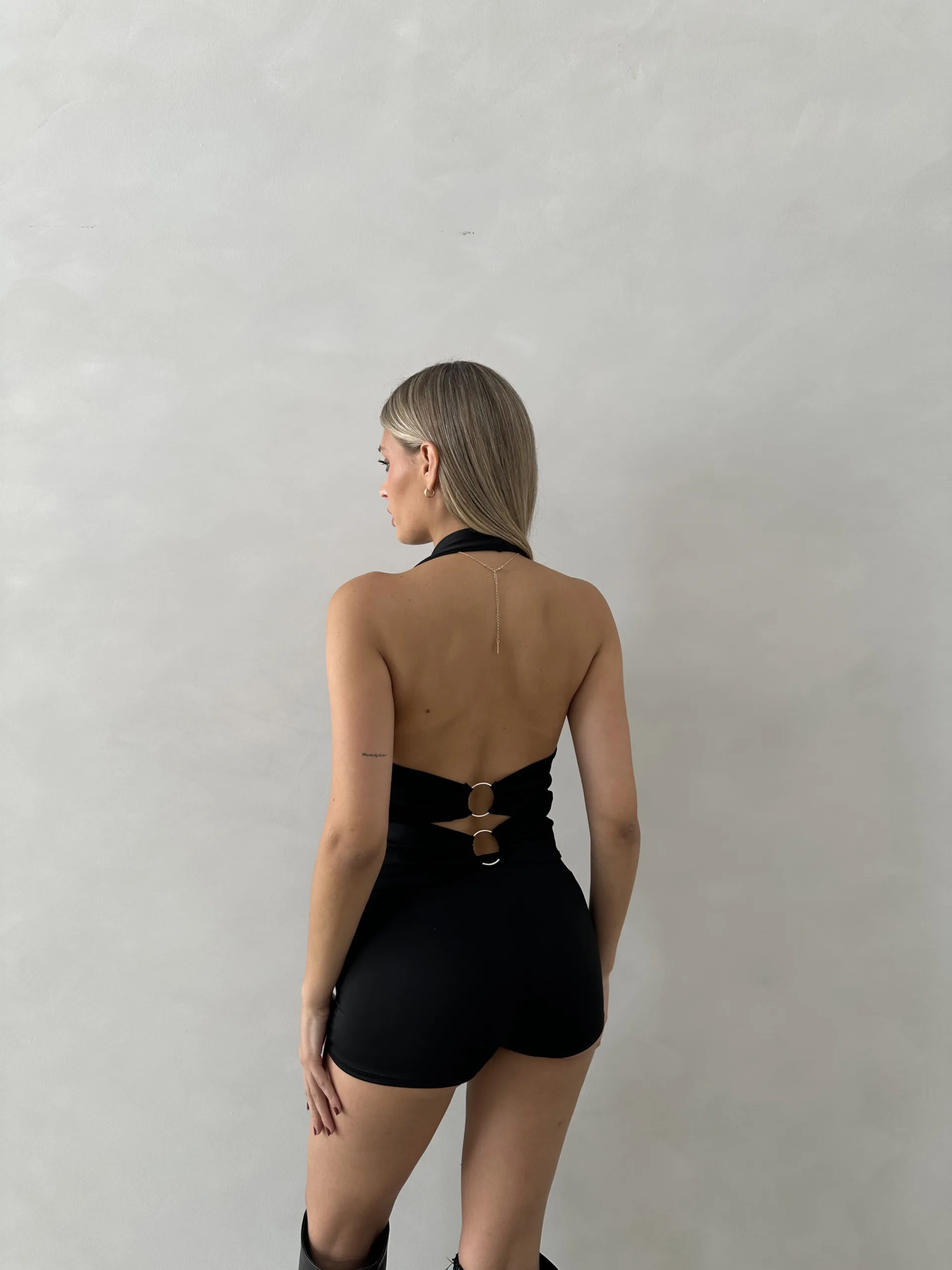 TOP HALTER DE TAZA FRUNCIDA CON ESPALDA DESCUBIERTA Y DOBLE ARGOLLA