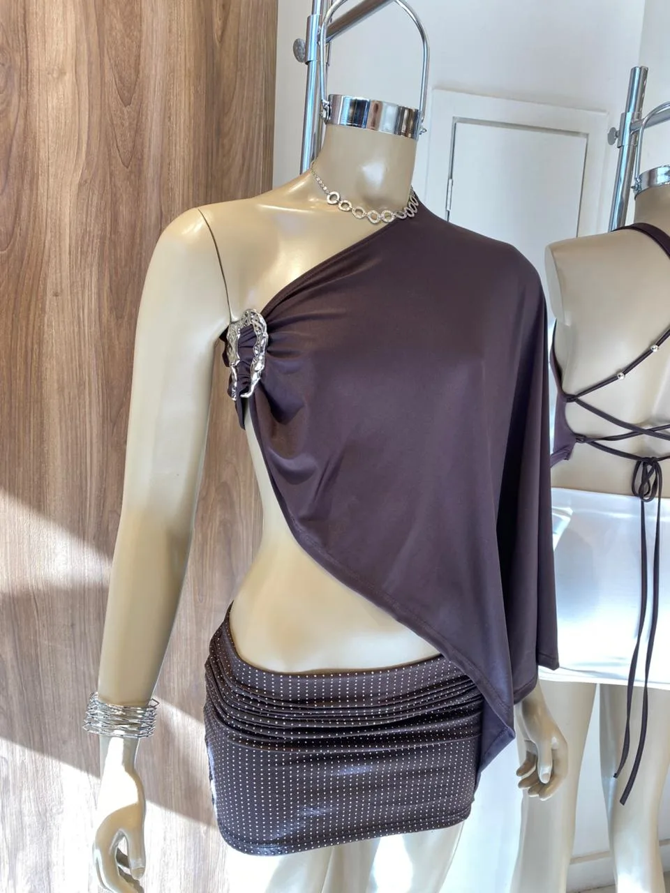 CAPA ASIMETRICA, HOMBRO DESCUBIERTO Y APLIQUE