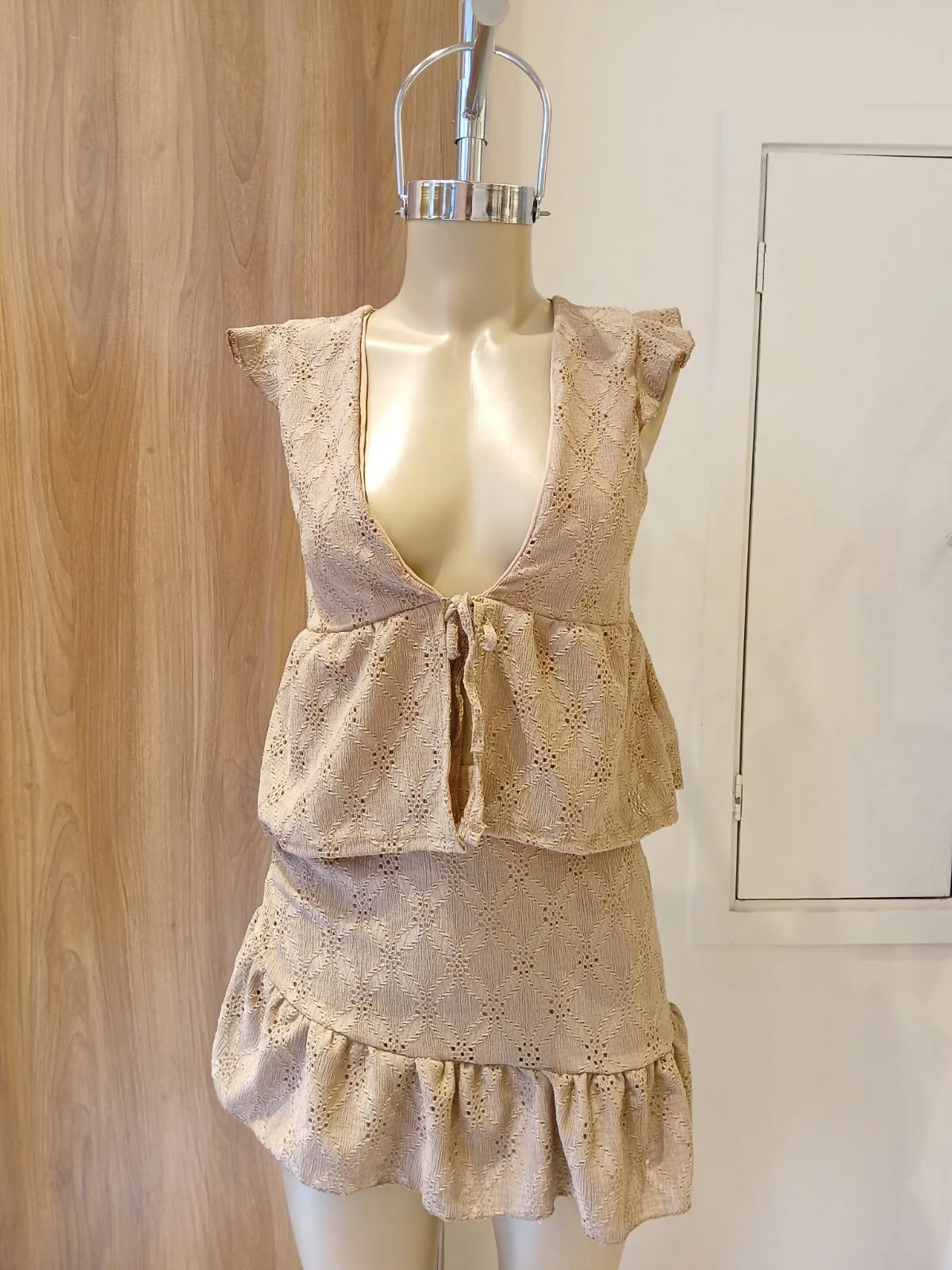 MINI CON FRUNCE LATERAL Y VOLADOS
