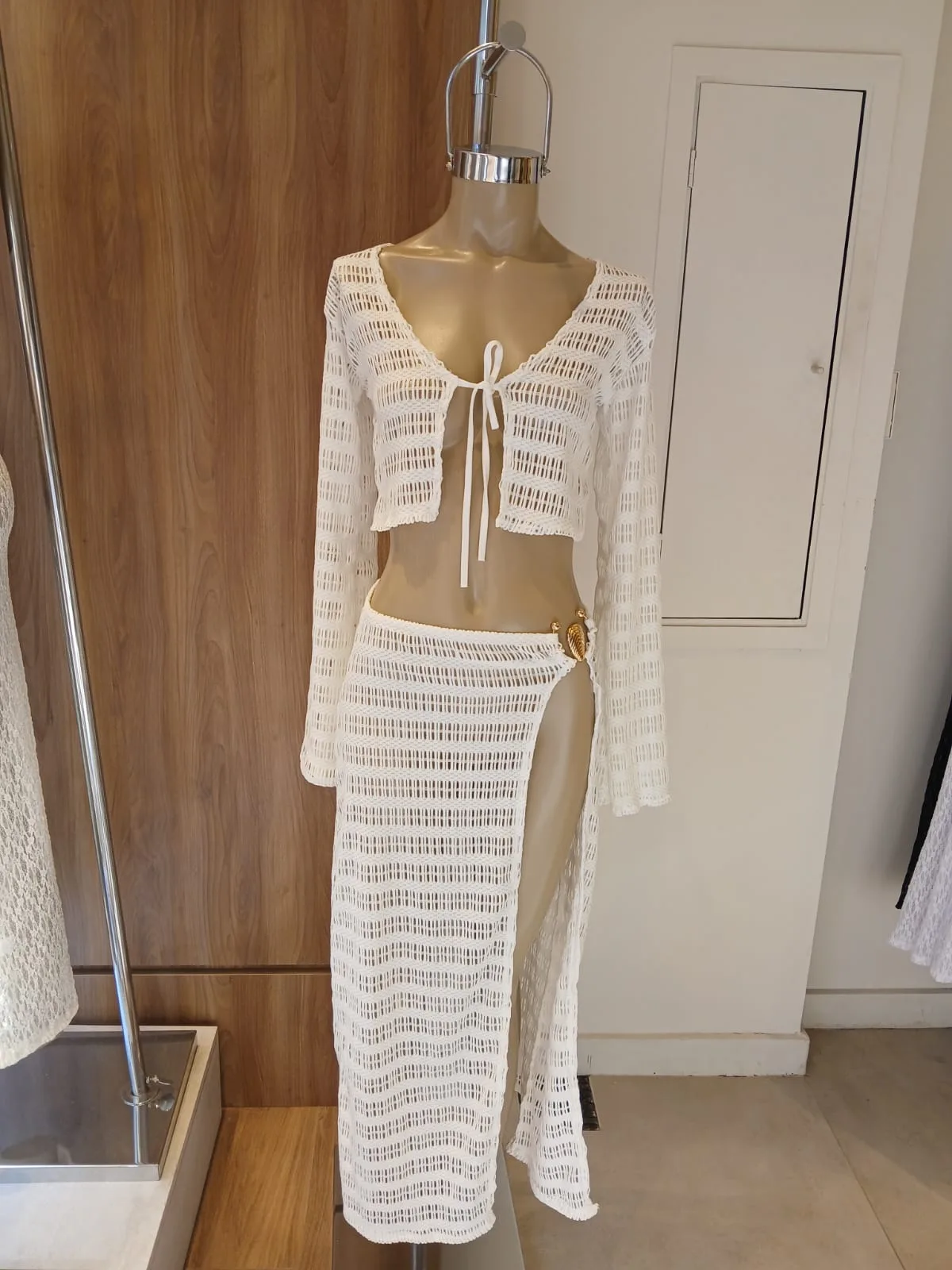 POLLERA LARGA CON APLIQUE LATERAL Y TAJO