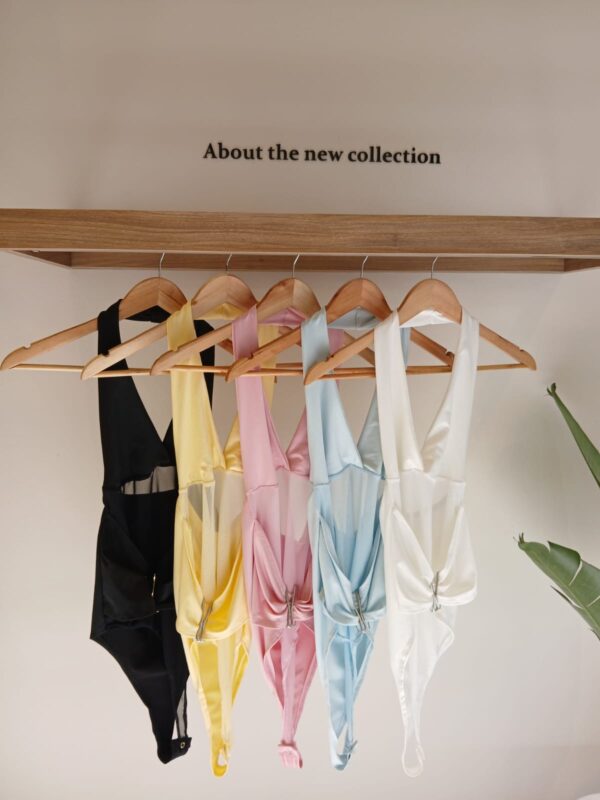 BODY HALTER CON FAJA FRUNCE Y APLIQUE