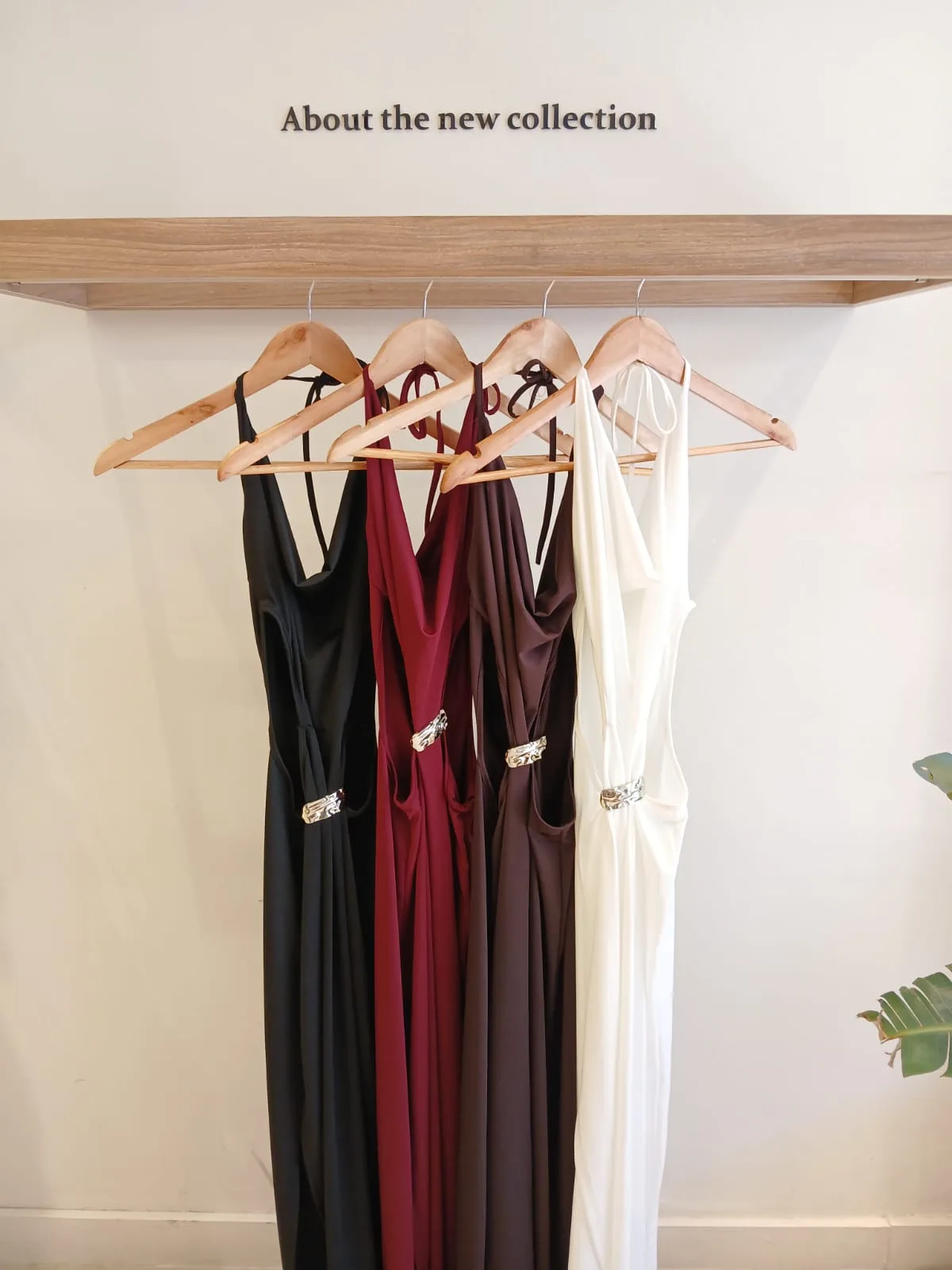 VESTIDO BUCHE CON APLIQUE Y ABERTURA