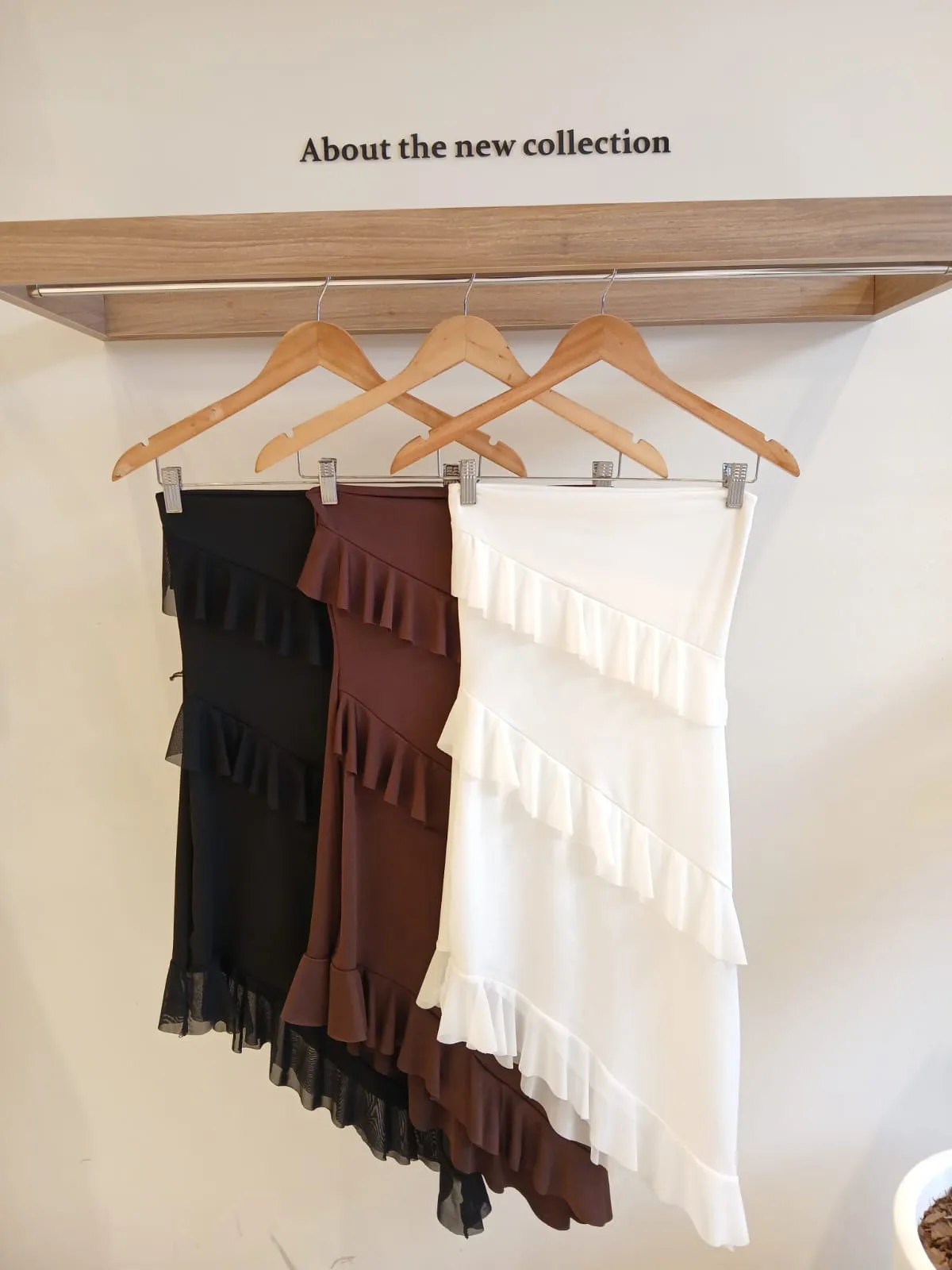 VESTIDO STRAPLES IRREGULAR CON VOLADOS