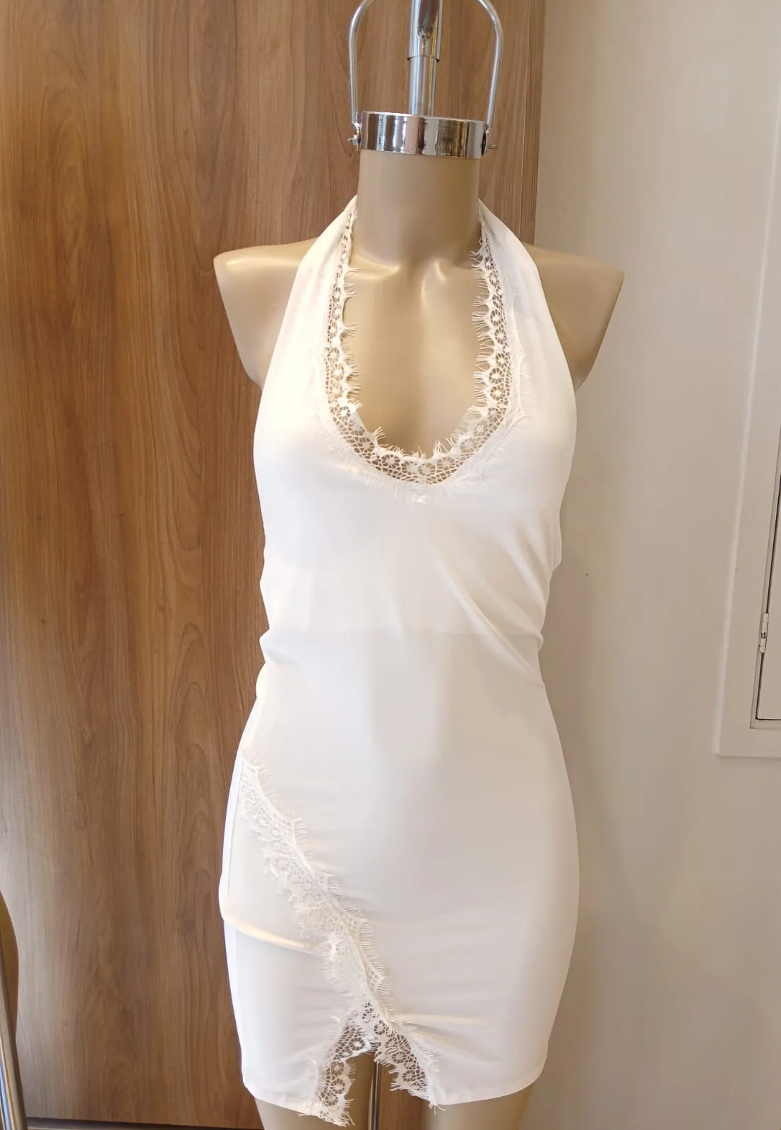 VESTIDO HALTER CON PUNTILLA Y MINI TAJO “BETHANY”