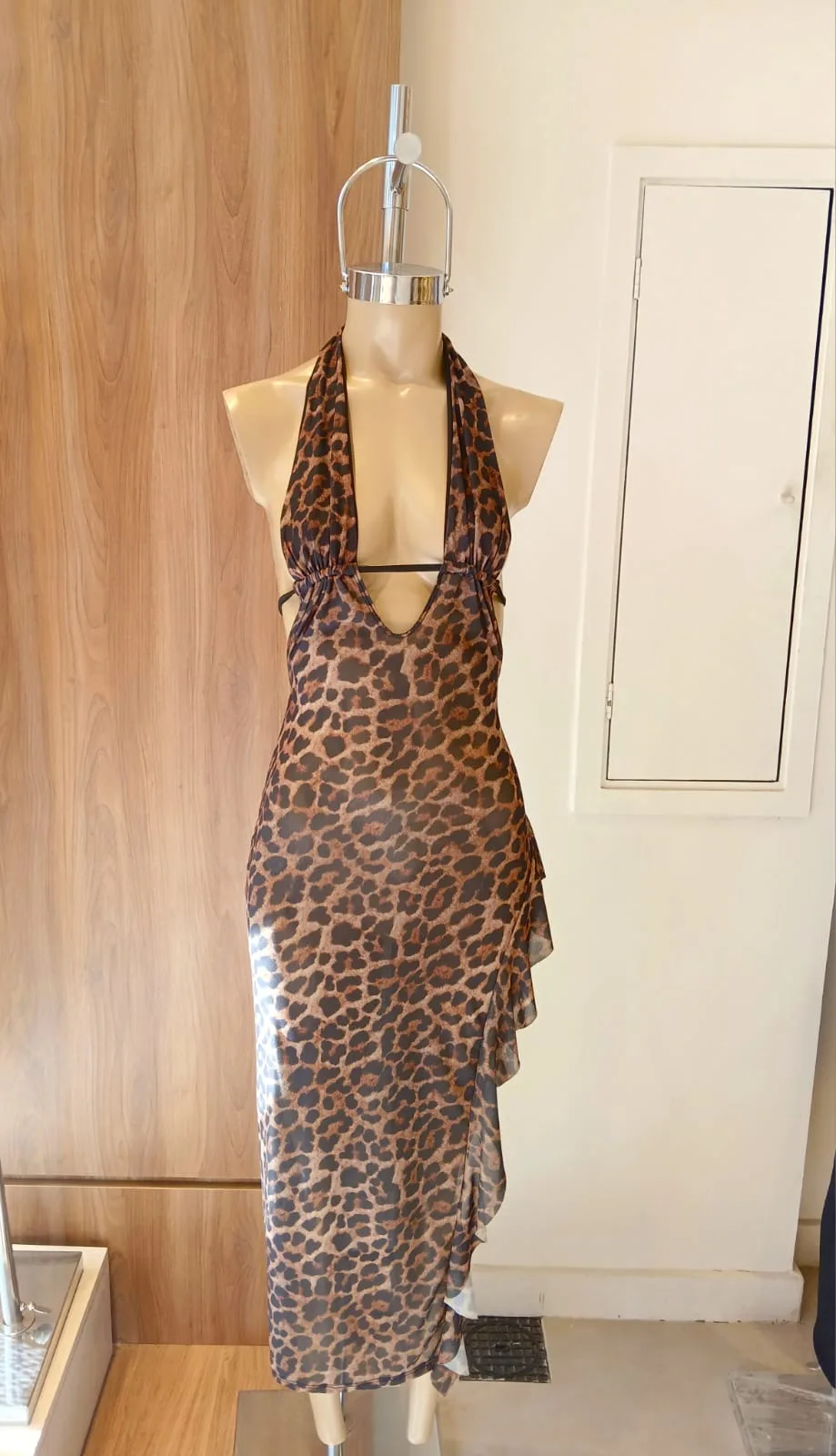 VESTIDO LARGO IRREGULAR CON VOLADOS Y TIRA PARA ATAR EN ESPALDA