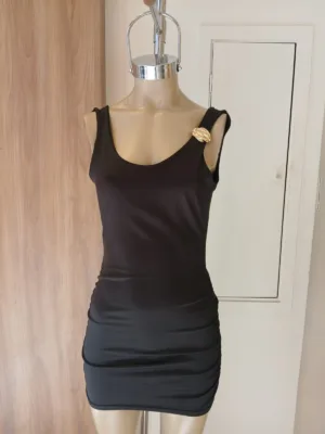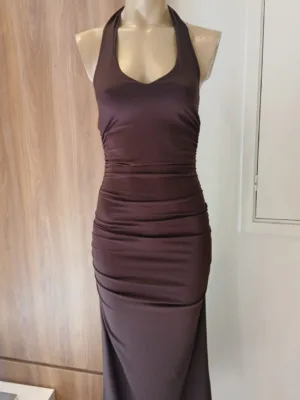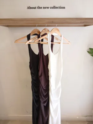 VESTIDO LARGO CUELLO MARILYN CON FRUNCES A LOS COSTADOS.