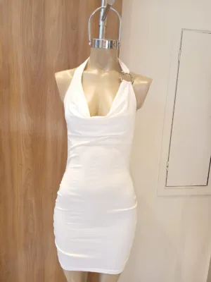 VESTIDO HALTER, CON ABERTURAS LATERALES Y APLIQUE NUBE